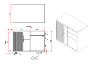 2 personal drawers and one Foolscap file drawer (suits Australan and NZ file frames), with central locking and a folding key. Recessed side handles present clean flat drawer fronts. Tambour door slides away. Meaning you do not allow space to swing a door.