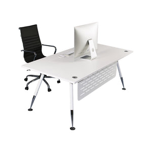Fleet Executive Desk Modesty Panel Stylish steel panel completes the managerial look of the Fleet Executive desk. Securely mounts quickly and simply. Can be ordered with the desks or as an upgrade later.
