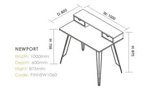 The Newport computer desk comes with 2 compact drawers and sleek wireform legs. Desk space is optimised for the WFH environment, and a light colour palette ensures the Newport will be in perfect harmony with your existing home decor.