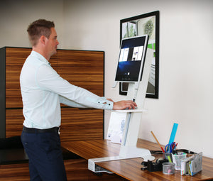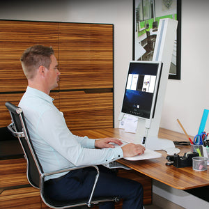 The Powerlator simply clamps onto your existing desk for stable and secure mounting ready for immediate use. With a quick click of a button, the electric unit can easily adjust the height allowing you to transition from a seated to standing position.